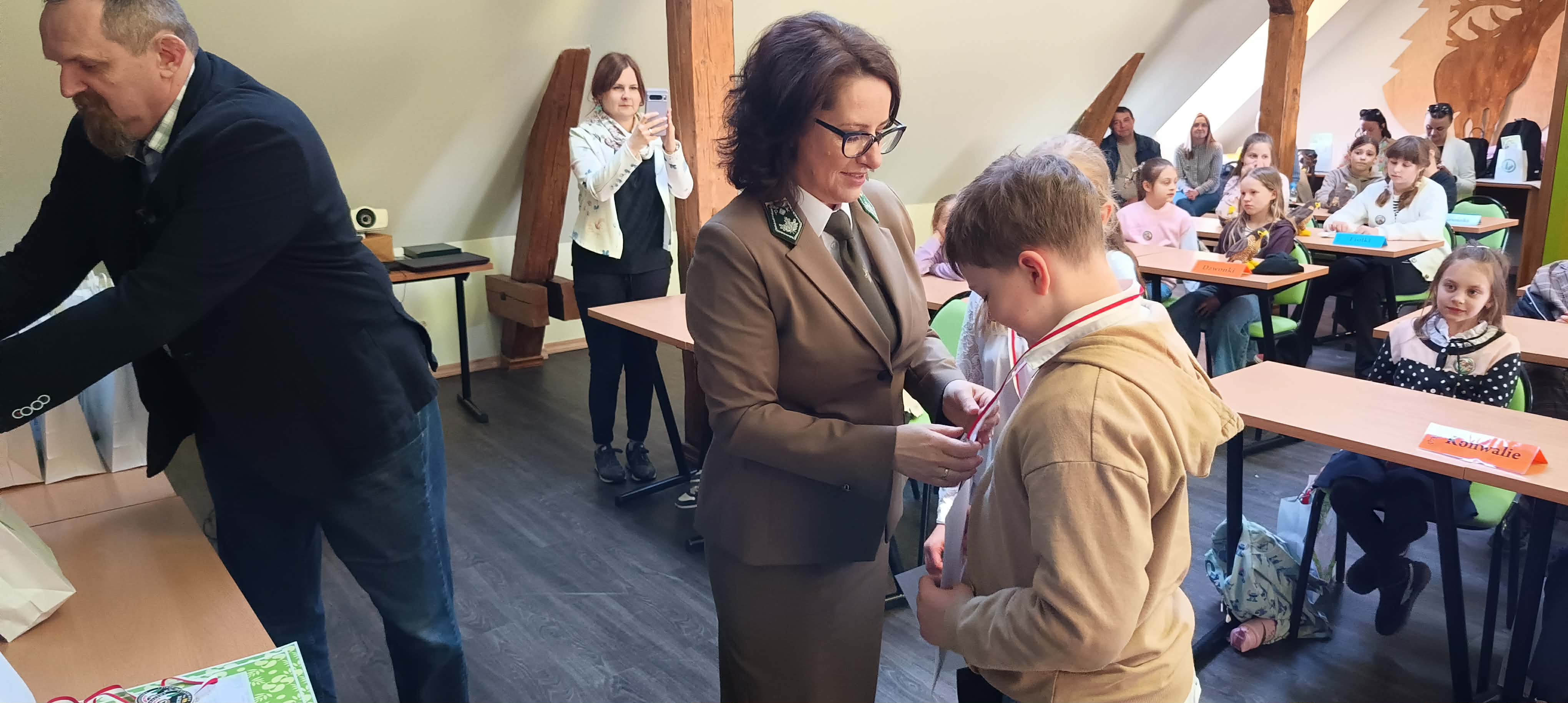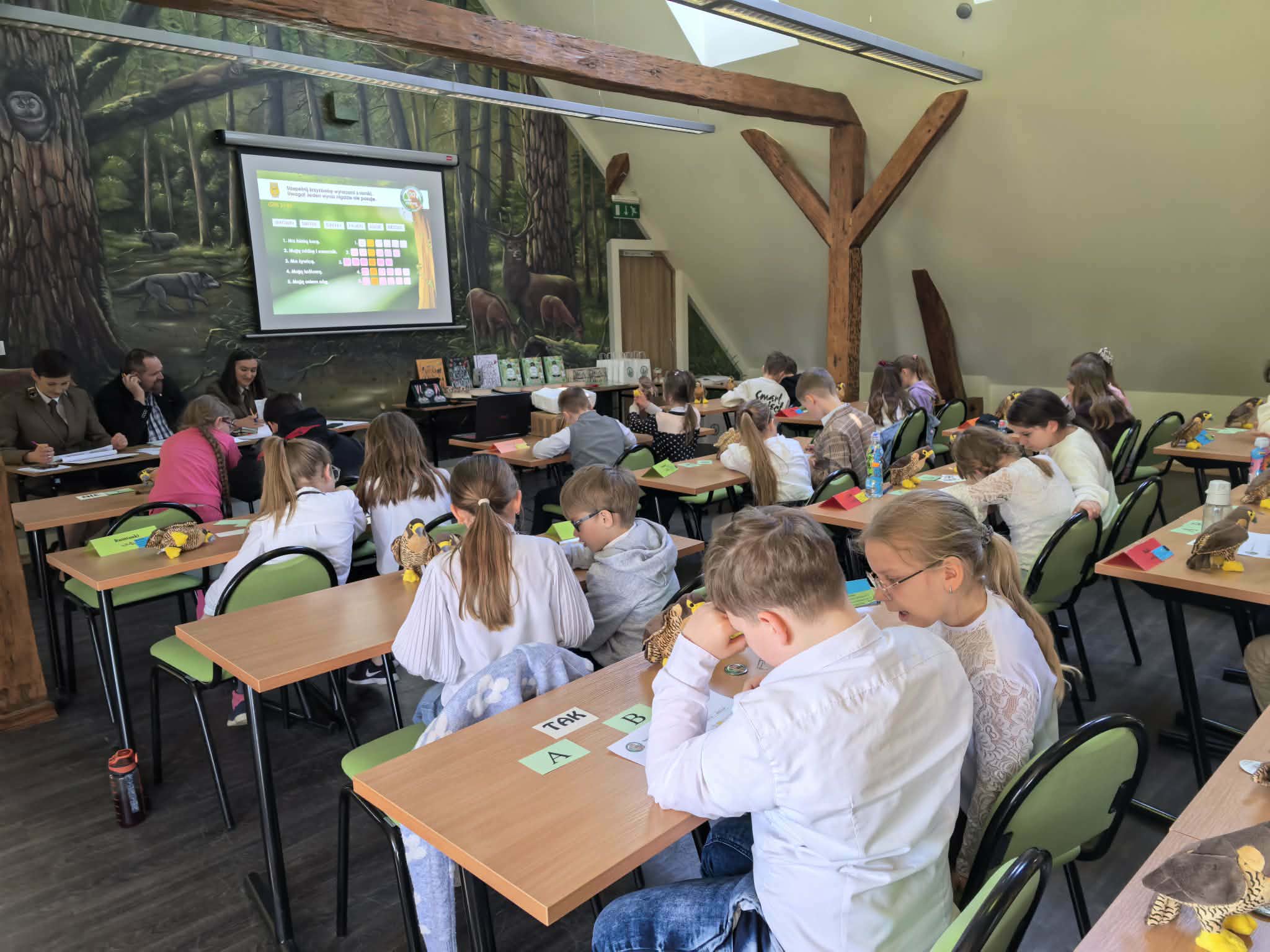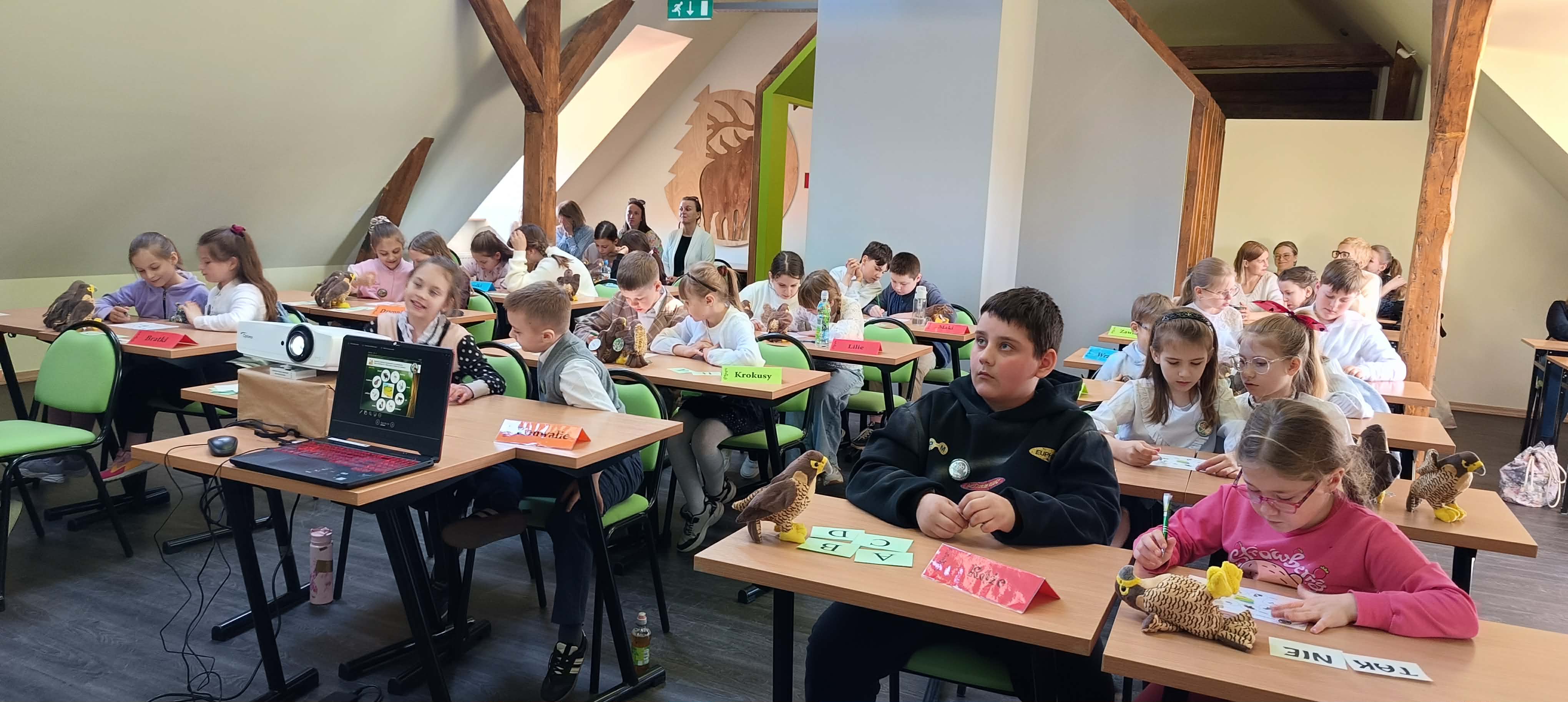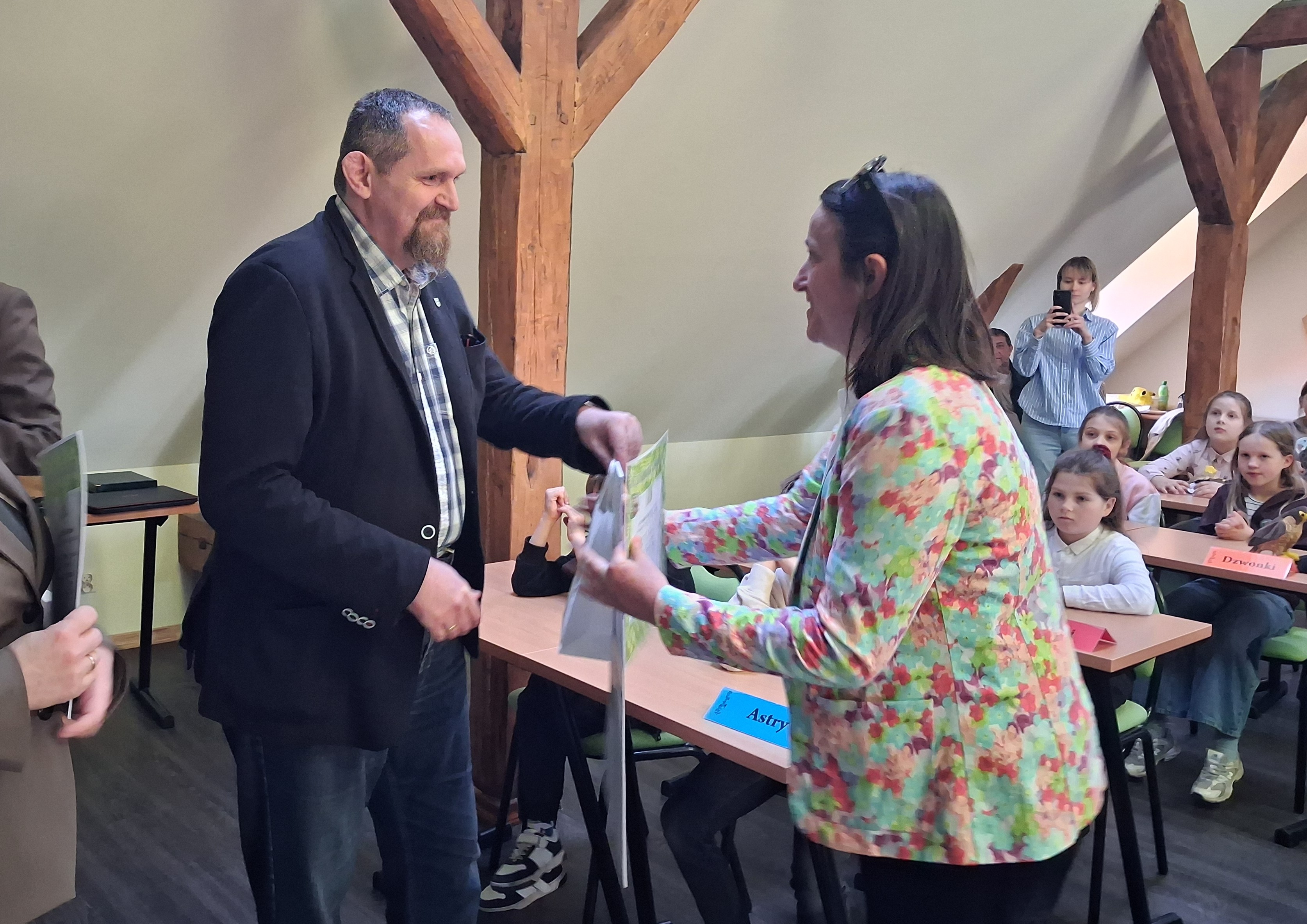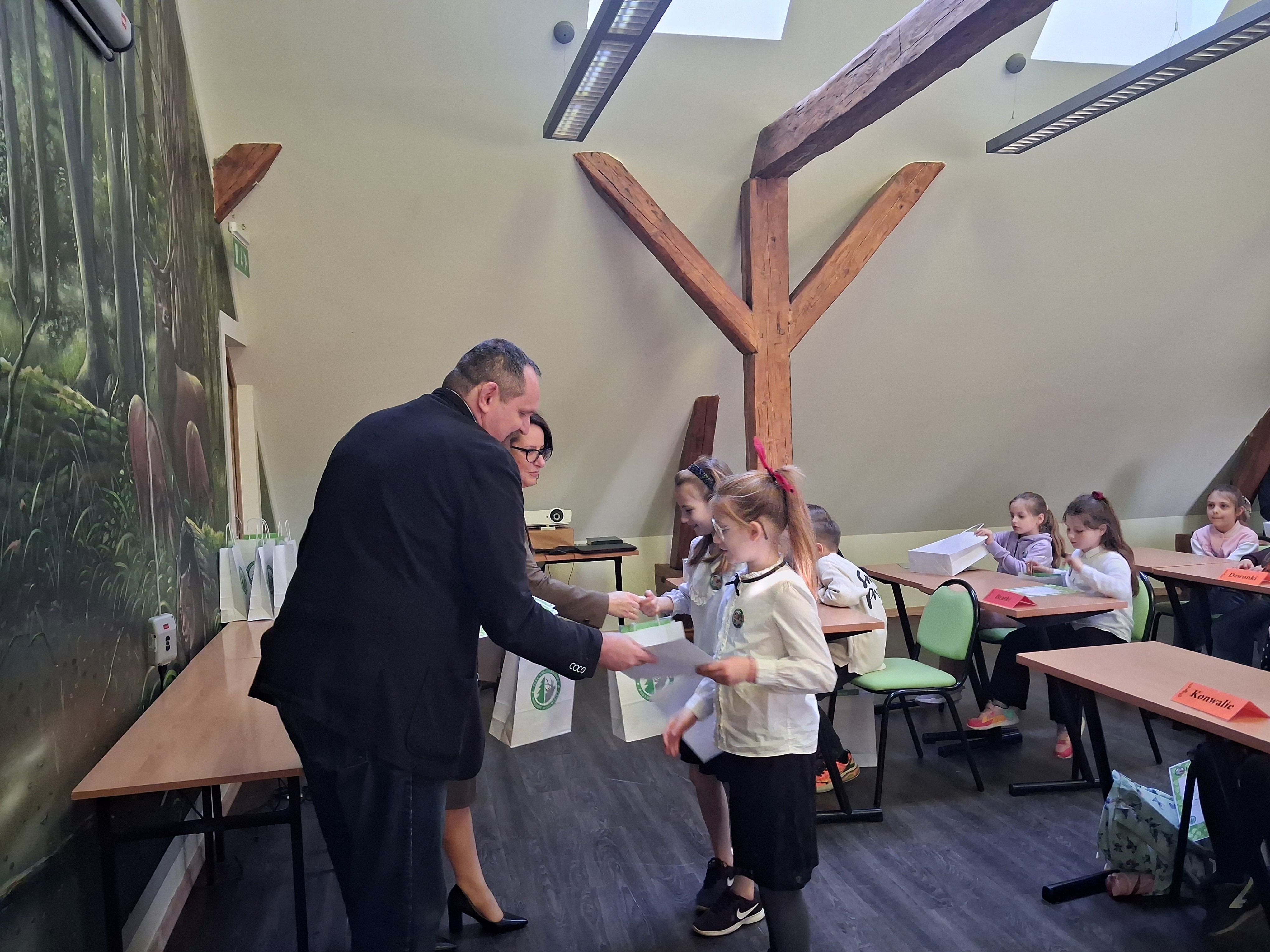 Zdobywcy I, II, III miejsca otrzymali odznaki Mądrego Puszczyka 2026. Nagrody dla laureatów i pozostałych uczestników konkursu oraz upominki dla nauczycieli ufundowało Starostwo Powiatowe w Gołdapi oraz Park Krajobrazowy Puszczy Rominckiej.